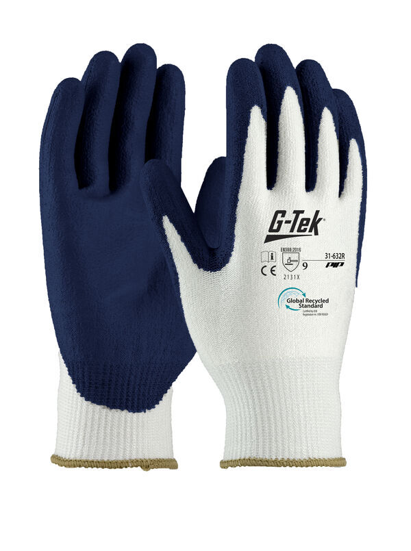 Gants support tricoté sans couture. Jauge 13. Enduction latex microsurface. Poignet tricot élastiqué
