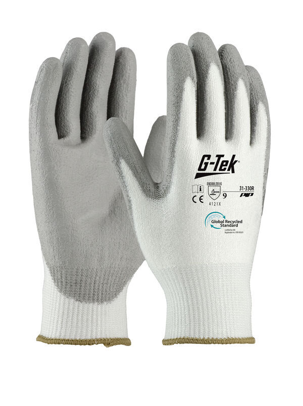 Gants support tricoté sans couture en PET recyclé. Jauge 13. Enduction mousse de nitrile. Poignet tricot élastiqué