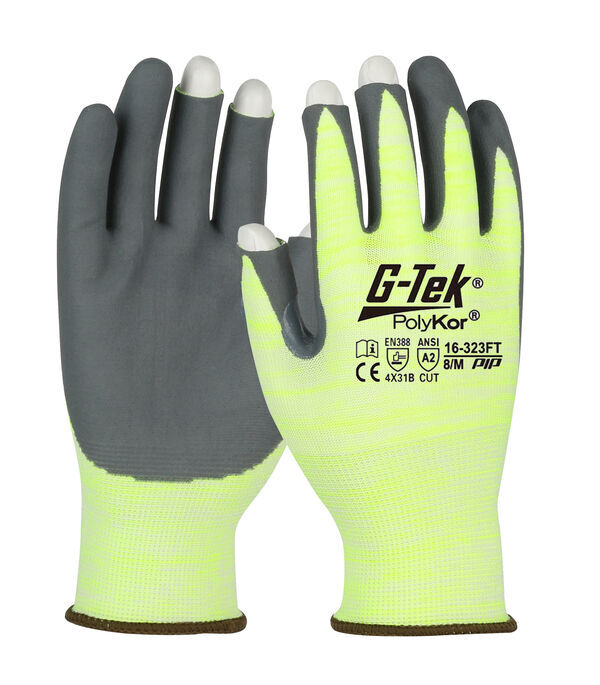 Gants support PolyKor®. Jauge 15. Enduction paume mousse de nitrile avec renforts pouces/index. BPoignet tricot élastiqué. | Coupure niveau B.
