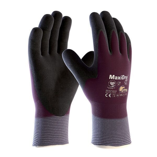 Gants support tricoté nylon/acrylique doublé et brossé. Jauge 10. Double enduction nitrile. Protection thermique jusqu'à -10°C. Complétement étanche. Poignet tricot élastiqué.