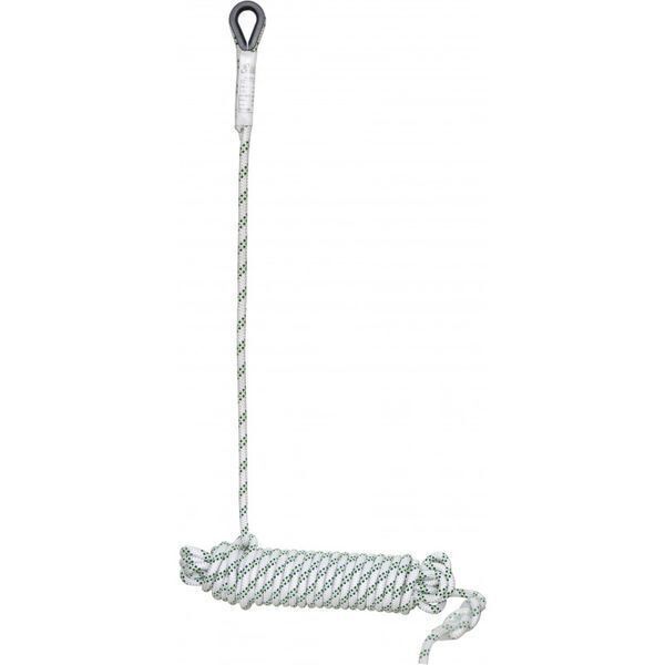 Corde de 11 mm d'épaisseur pour support d'assurage. Boucle cossée en partie haute pour une meilleure résistance à l’abrasion et extrémité manufacturée de l’autre côté. Coutures protégées sous gaine transparente. | Testé 140 kg.