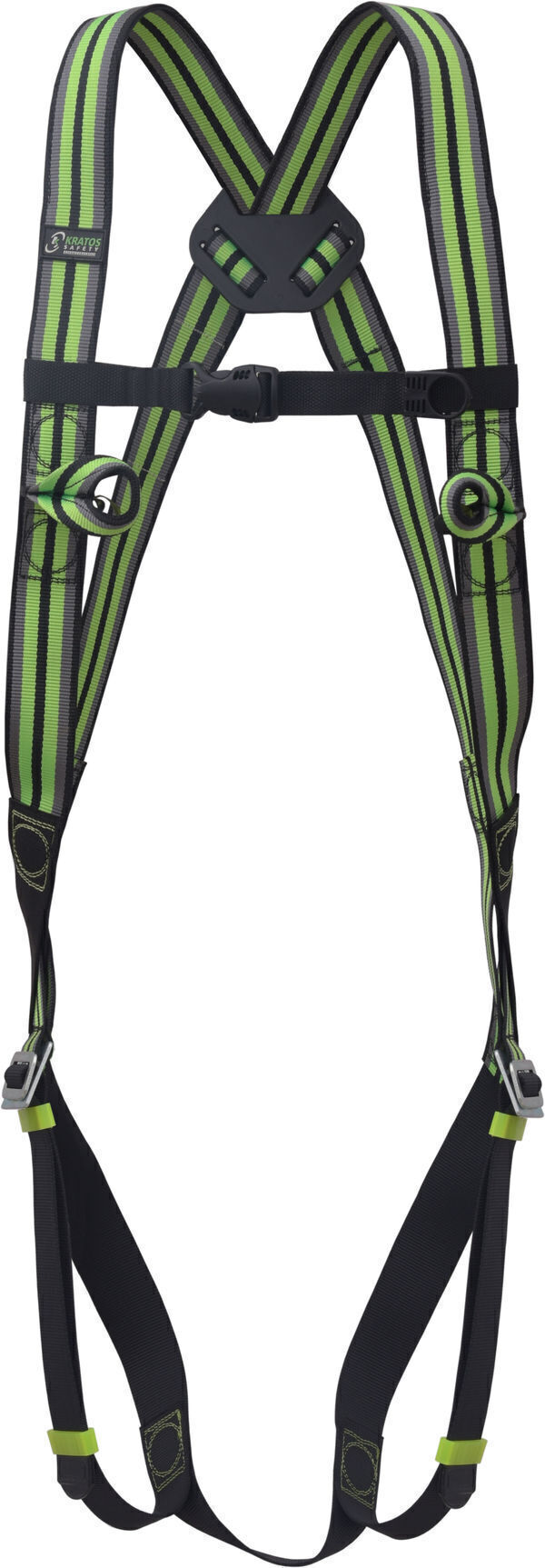 Harnais avec accrochage en 2 points : 1 dé dorsal, 1 accrochage sternal formé de 2 boucles textile pour système antichute. Sangles de cuisses ajustables. Ergonomie : sangle polyester sous fessière. | Testé 140 kg